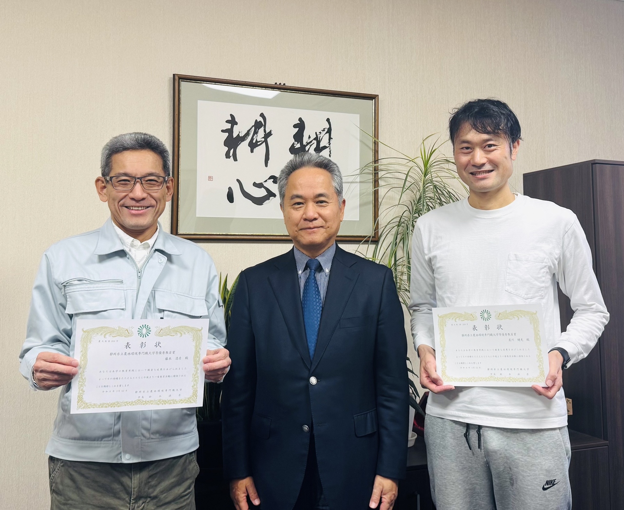 令和7年度において、卓越した指導力により教育効果の高い授業を実践した教員として、藤本清彦教授(木材生産システム)および星川健史講師(木材生産システム)の2名が学長より表彰されました。両名は、学生による授業評価アンケートにおいて極めて高い評価を得ており、分かりやすい授業運営や学生の理解を深める工夫が高く評価されています。本学では、今後も教育の質向上に努め、学生の学びを一層充実させてまいります。
